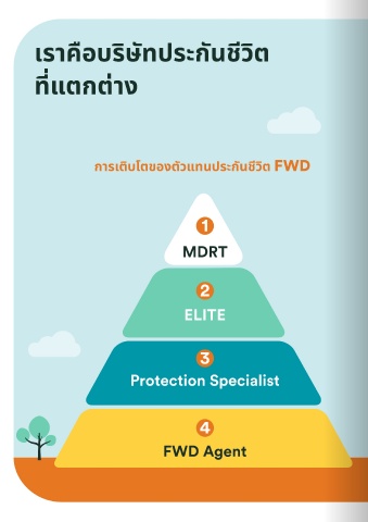 เร าค ่อบร ่ษ ัท ปร ะกันช ่ว่ต ท ่�แต กต ่าง การ เต ่บโต ของต ัวแท นปร ะกันช ่ว่ต FWD 1 MDRT 2 ELITE 3 Protection Specialist 4 FWD Agent